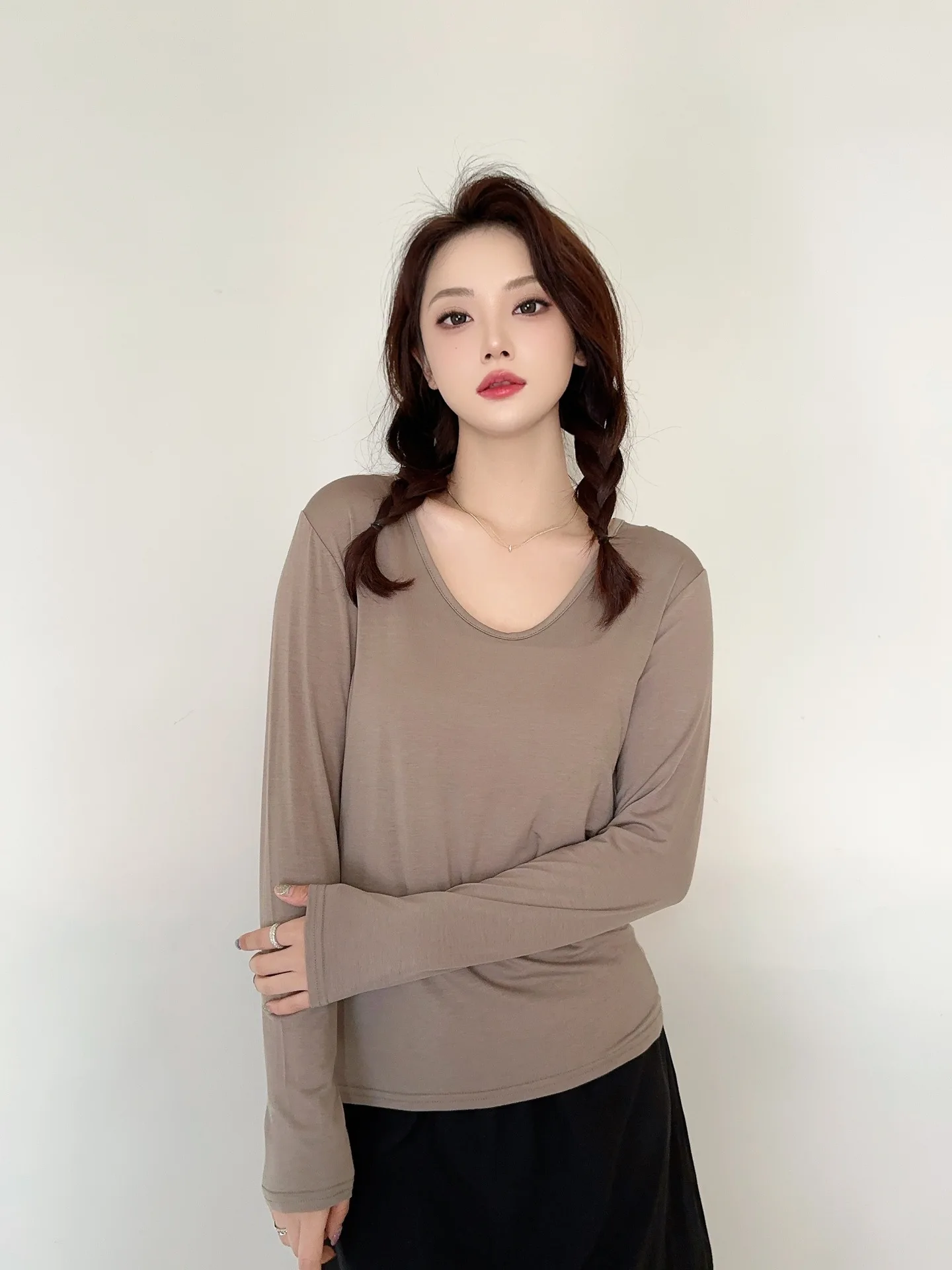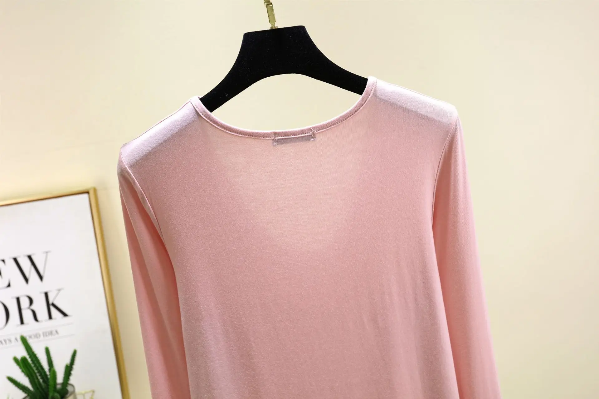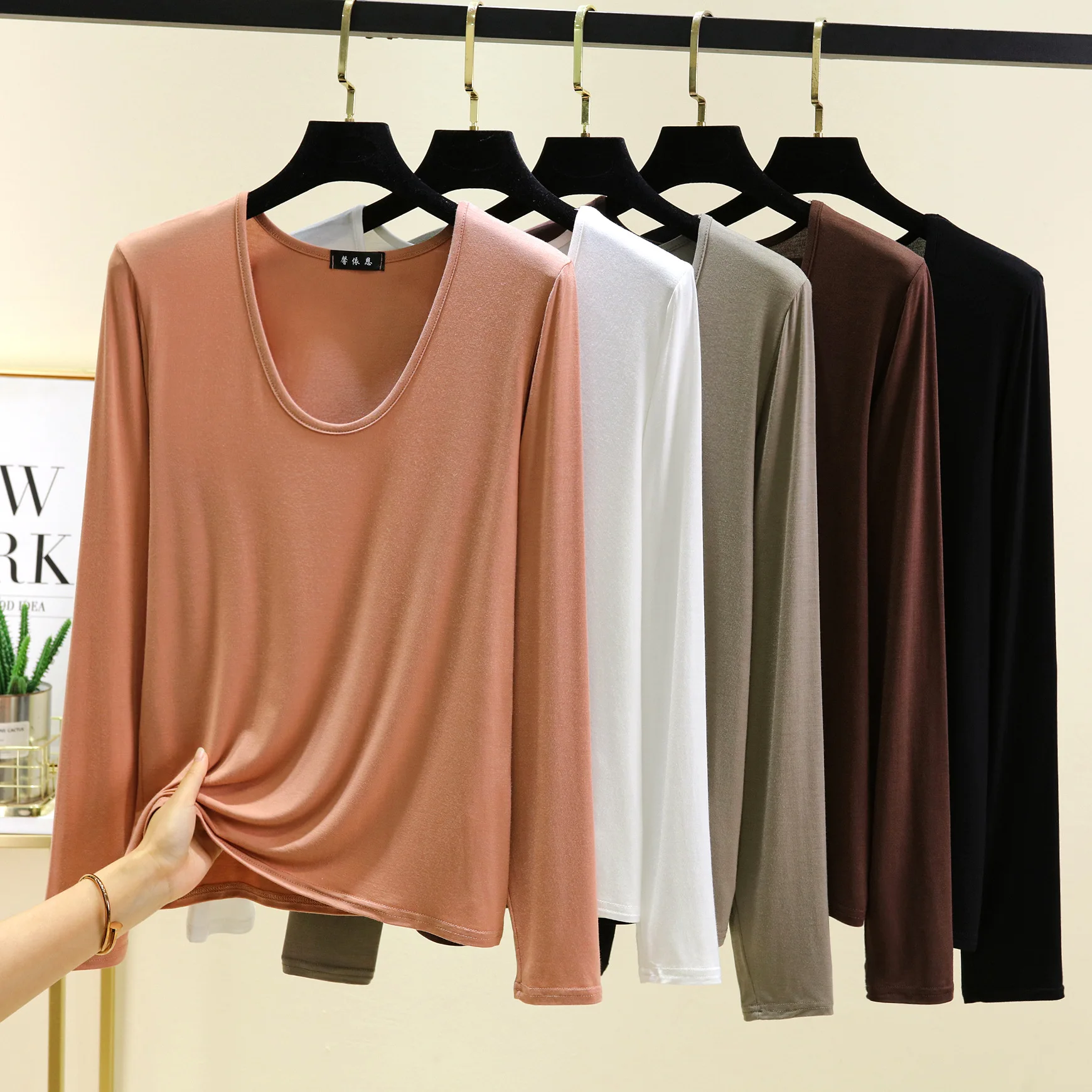 Plus size L to 6XL U-Neck Women's T-shirt Long sleeves Loose Bottomed Tshirts solid color Casual Tee Tops All match