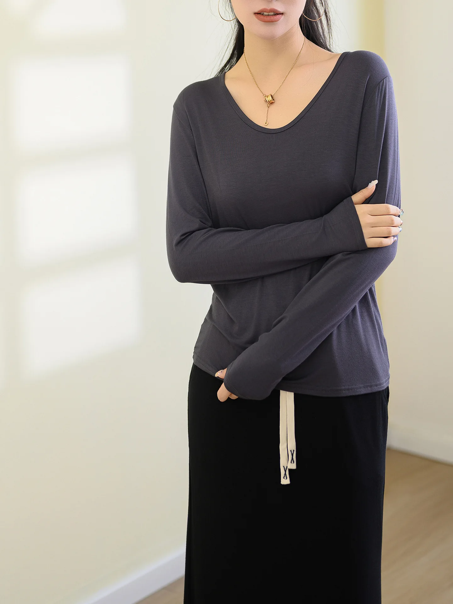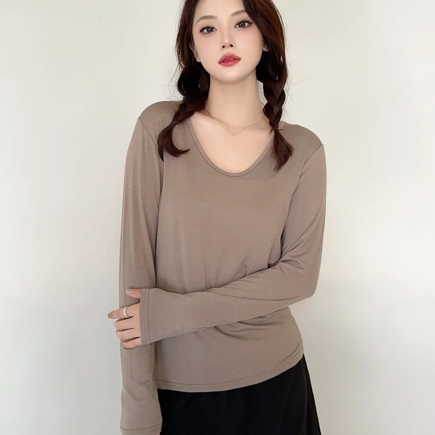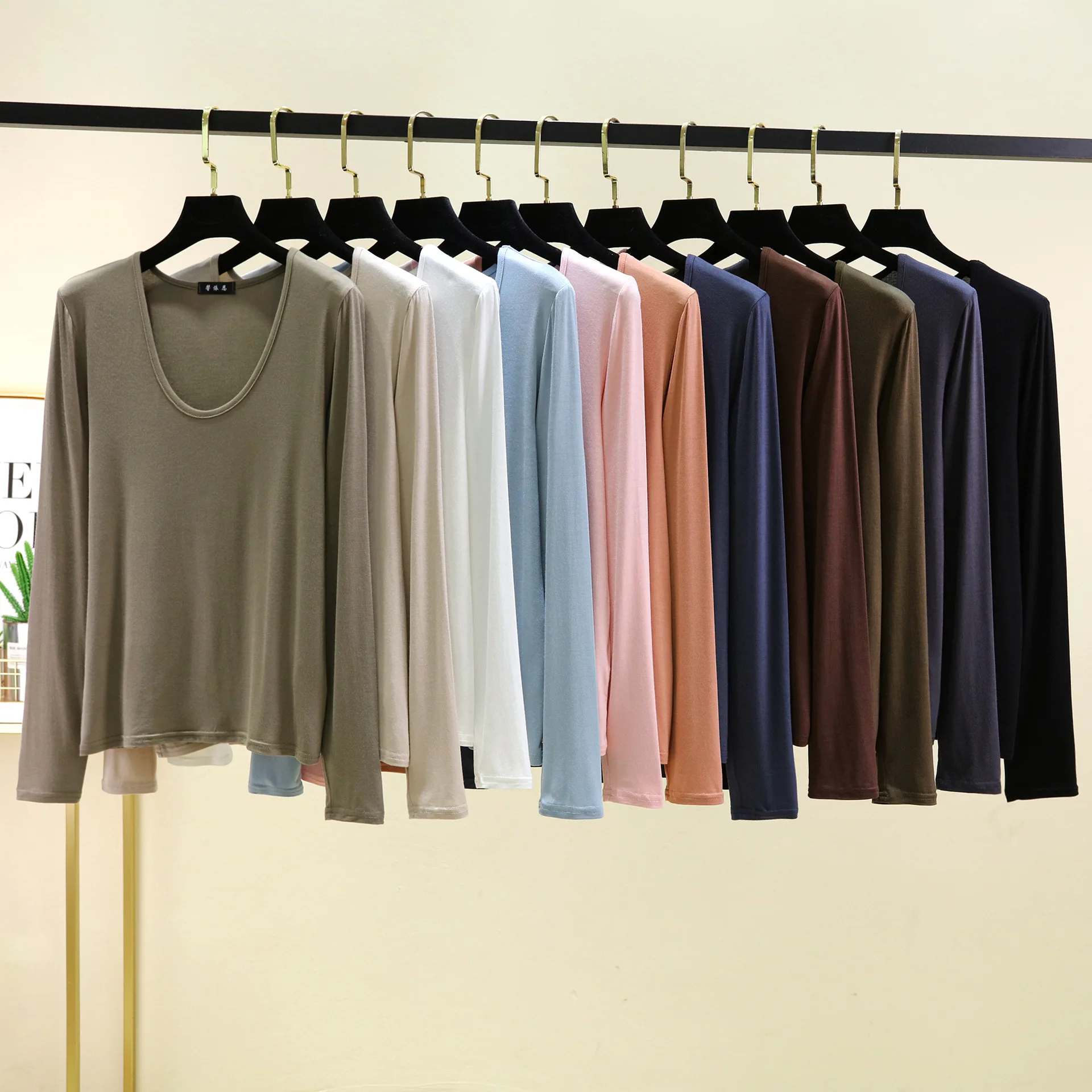 Plus size L to 6XL U-Neck Women's T-shirt Long sleeves Loose Bottomed Tshirts solid color Casual Tee Tops All match